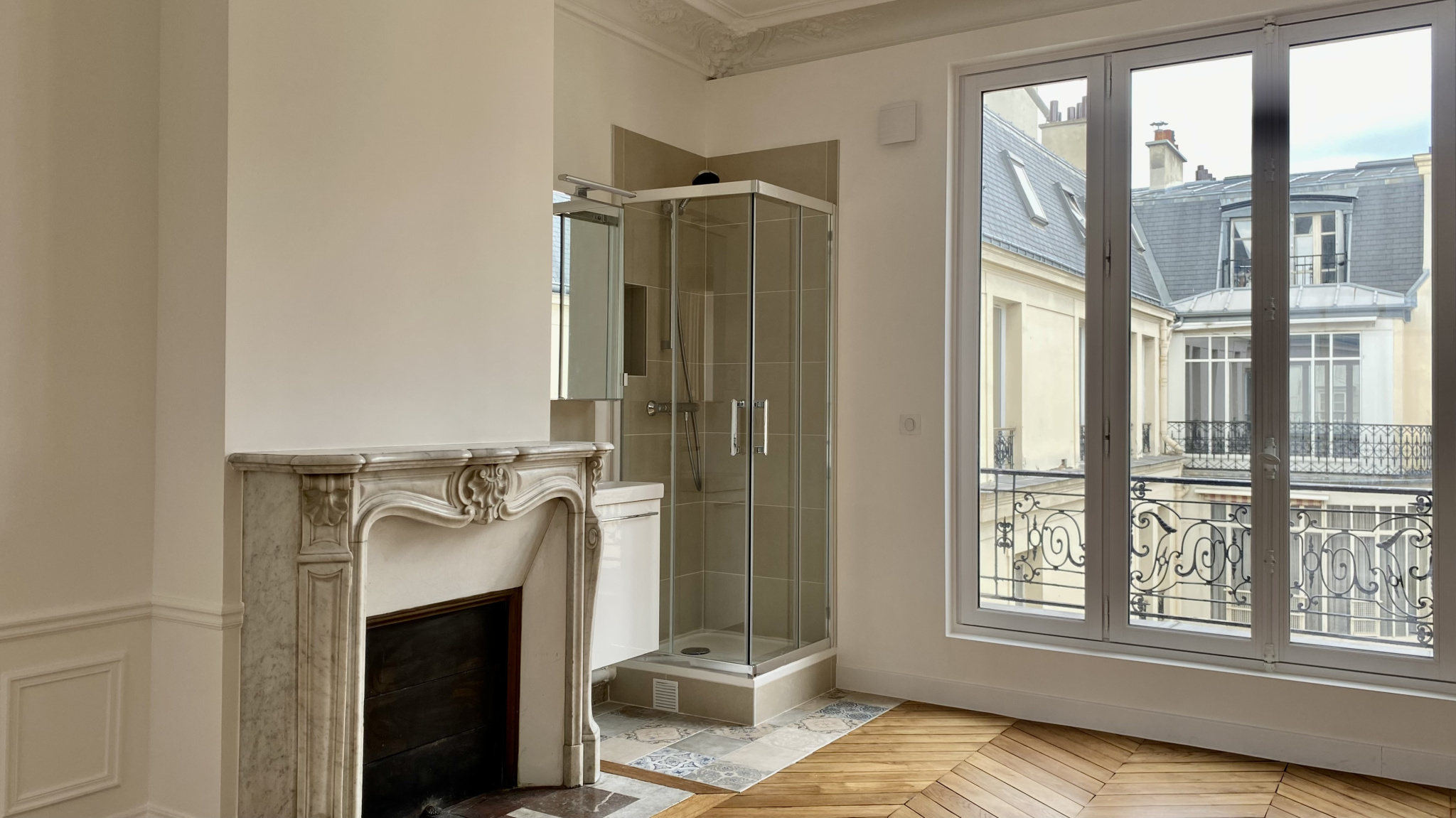 Paris (75006)VAVIN / LUXEMBOURG - Au 5ème et dernier étage avec ascenseur, donnant sur cour arborée. Un appartement non meublé refait entièrement à neuf, traversant, au calme absolu. Entrée, séjour, salle à manger, deux chambres avec douche, salle de bain, cuisine aménagée et semi-équipées. Parquet, moulures, cheminées. Exposition est-ouest.En annexe, une cave.