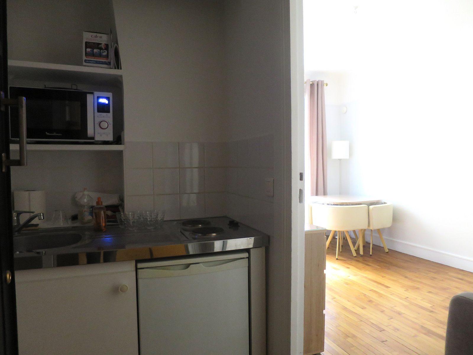 Au 2ème étage avec ascenseur, sur cour arborée. Un studio meublé comprenant entrée avec coin cuisine, séjour, salle de douche avec WC. Clair et calme. Très bon état.