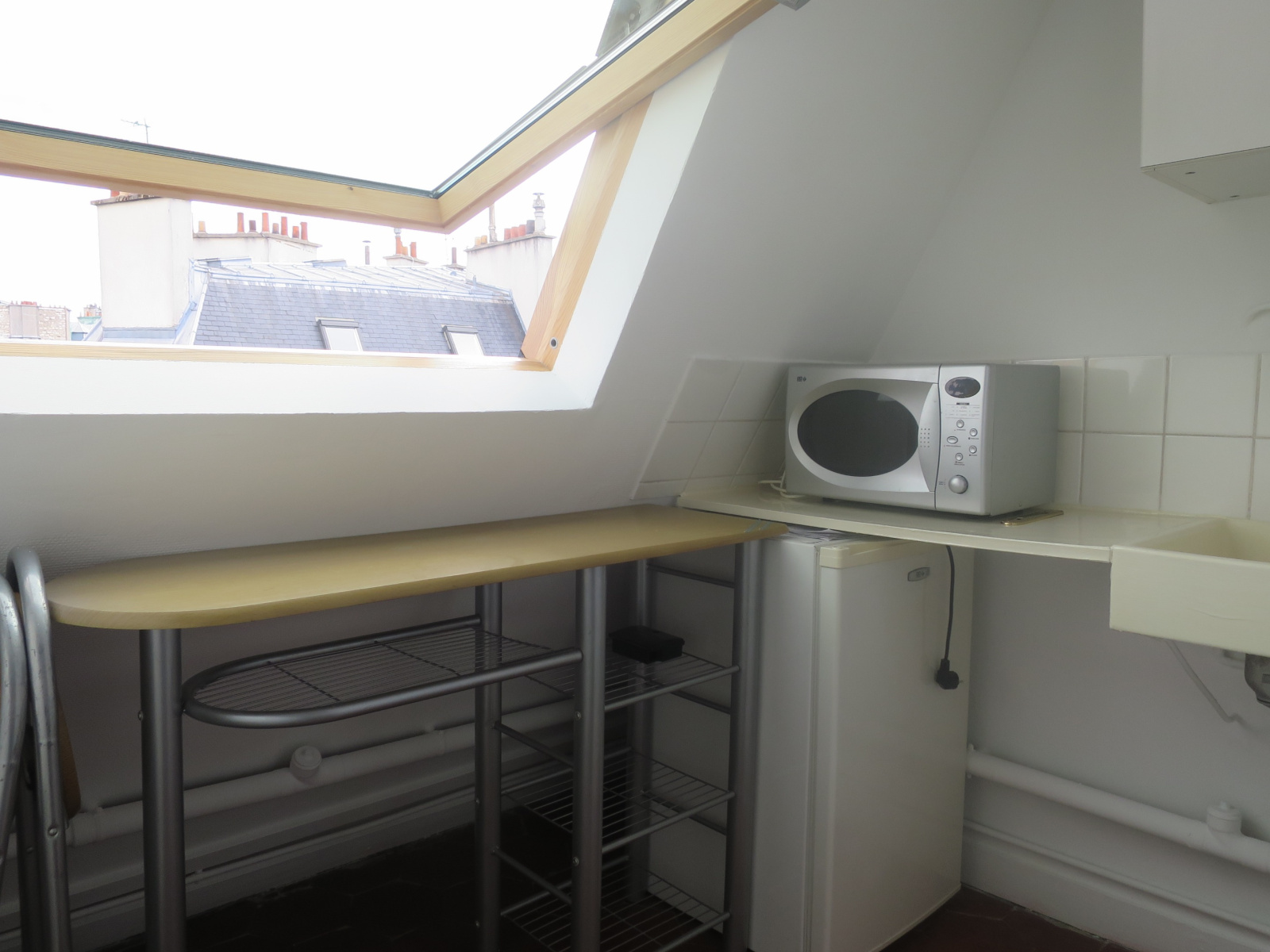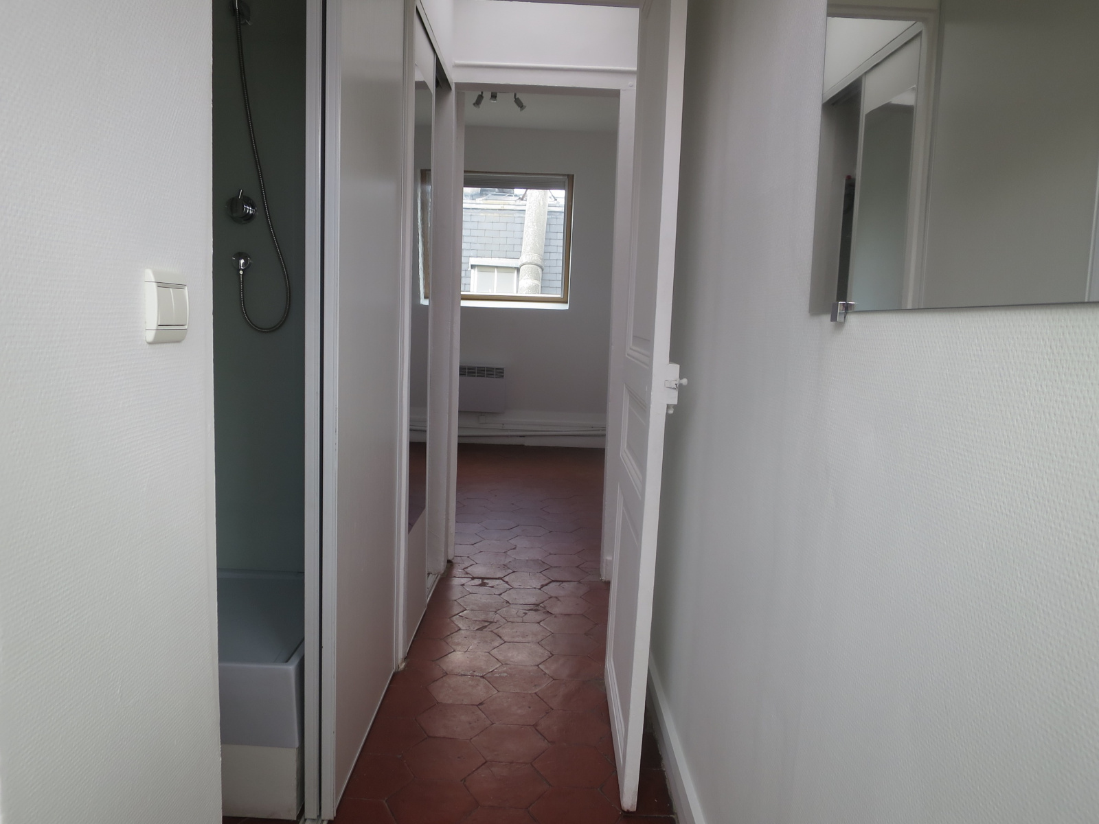 Au 7ème étage d'un immeuble Pierre de Taille. Studette comprenant entrée, cuisine aménagée, espace douche avec WC, chambre. Clair et calme. Idéal investisseurs.